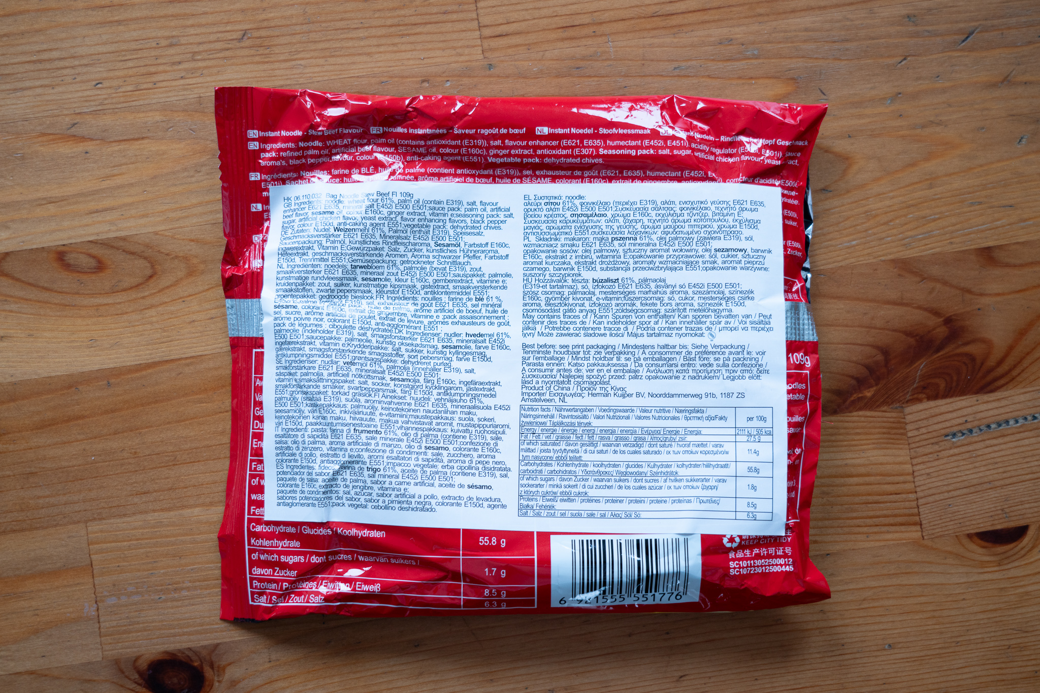 | Anmerkung | JML Instant Noodle Artificial Stew Beef Flavour |